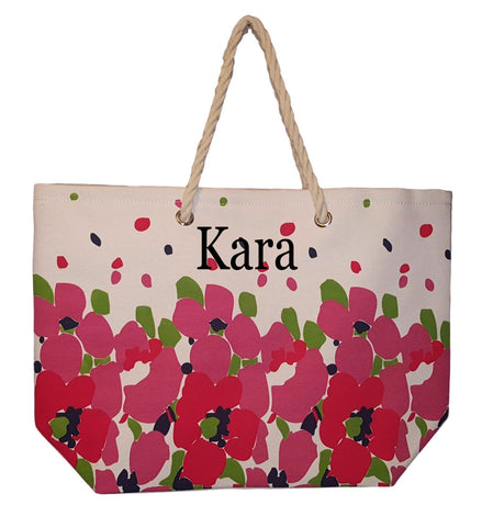 Floral Design Beach Bag by Karen Keith - Personalization Available (Embroidered Name - Pink)
