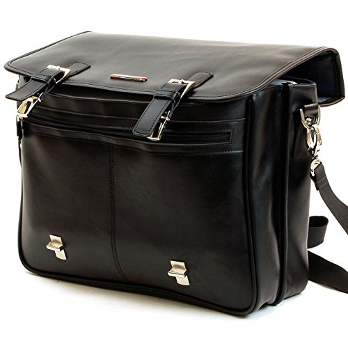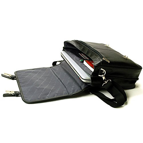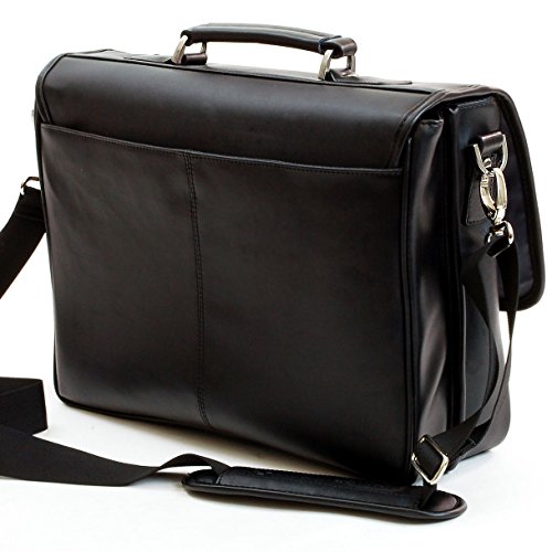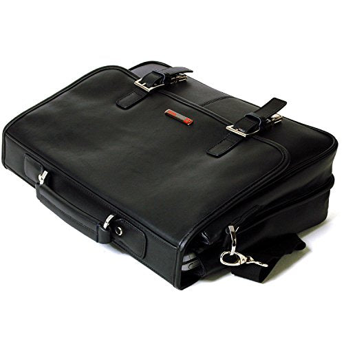 Details: Hunter Dressy Leather Laptop Briefcase By Alpine Swiss MSRP $260.00 Hunter Flap-over double buckle leather briefcase is a professional dressy briefcase with many features in a compact double gusset semi structured frame. This will allow you some flexibility to increase what you carry inside and have the bag look good with a lot of very little being carried in it. You will also enjoy a 1 Year Manufacturer's Warranty for this item to be completely free of any manufacturer or material defects. Product Features: Measures: 16" x 14" x 4.5" Removable Shoulder Strap is Adjustable Length Professional, Fashionable, Functional Padded Laptop Sleeve measures 14.5" L x 10.5" H x 2" W - Back Pocket will Safely Carry Computers 1 Year Manufacturer's Warranty Professional & Decorative Double Buckle Straps Quick Flap release with a Catch Tuck Lock Organizer Section For Business Essentials Fully Lined Interior Divided Main Section - Double Gusset Outer Back Pocket for Easy Access Front Zippered Pocket Inside Zippered File Sleeve Quality Hardware Durable Yet Lightweight Leather Construction