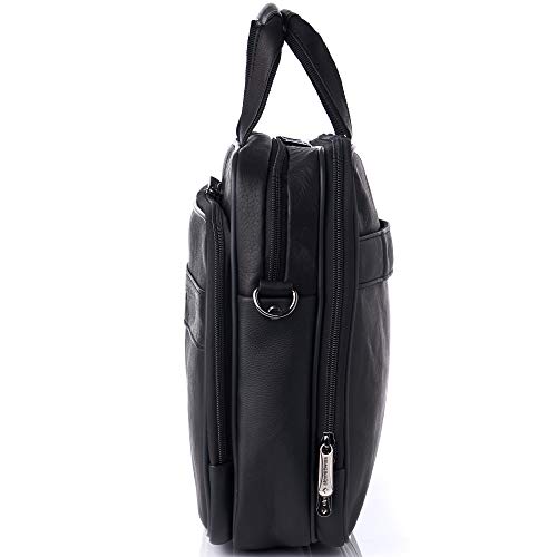 - LAPTOP SLEEVE & ORGANIZER - Center Section is fully padded to carry 13" to 15.6" notebook computers. Top-zip messenger style opening for easy access, get into your bag without having to take it off your shoulder. Comfortable padded adjustable, removable shoulder strap. Front organizer area includes 2 mesh elastic pockets allowing you to quickly see and find what you are looking for. pen holders and 2 slip pouches. Back section features a divided file folder for Legal, Letter or A4 sized files.