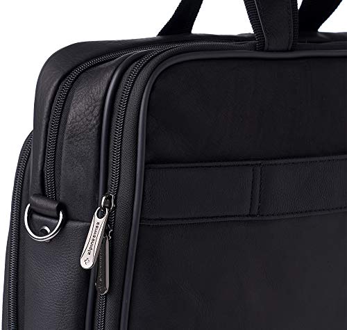 Details: 15.6” Laptop Briefcase Portfolio By Alpine Swiss Product Features: Genuine Leather TSA APPROVED CARRY ON SIZE - Measurements 16” x 12” x 5” – TSA approved as a personal item or a carry-on to bring in flight, fits under seats as well. LAPTOP SLEEVE & ORGANIZER - Center Section is fully padded to carry 13” to 15.6” notebook computers. Top-zip messenger style opening for easy access, get into your bag without having to take it off your shoulder. Comfortable padded adjustable, removable shoulder strap. Front organizer area includes 2 mesh elastic pockets allowing you to quickly see and find what you are looking for. pen holders and 2 slip pouches. Back section features a divided file folder for Legal, Letter or A4 sized files. DURABLE MATERIALS & CONSTRUCTION- Dual leather handles are reinforced with ballistic nylon for durability. Shoulder strap buckles are attached to the case using metal rivets to insure these do not rip over time with the weight strain. Superior workmanship, well stitched and put together with attention paid to every detail of the construction process. Elegant polished gun-metal shade hardware. Back trolley piggy back attachment. Well-padded all around to protect your belongings. QUALITY COLOMBIAN LEATHER - Colombian Vacquetta Leather is a durable pebble grain finish leather. This material is made of cowhide and is minimally treated to maintain its natural beauty. Each case can have its own unique characteristic grain and markings as well as color variations. WARRANTY - Comes with manufacturer’s warranty. MSRP $295.00 Alpine Swiss donates 2500 meals every day to hungry children in the U.S. and around the world through our partnership with Children’s Hunger Fund. These meals are hand delivered in a Food Pack, which will contain enough food to feed a family of 4-5 for a week to the homes of the needy by trained volunteers in their community, establishing relationships that foster genuine
