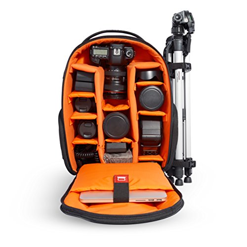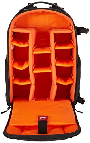 - Can hold a full DSLR body with lens attached; 10 additional configurable compartments for lenses, chargers, batteries, filters and more