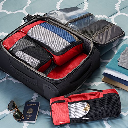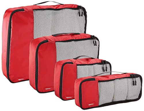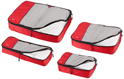 AmazonBasics 4-Piece Packing Cube Set - Small, Medium, Large, and Slim, Red