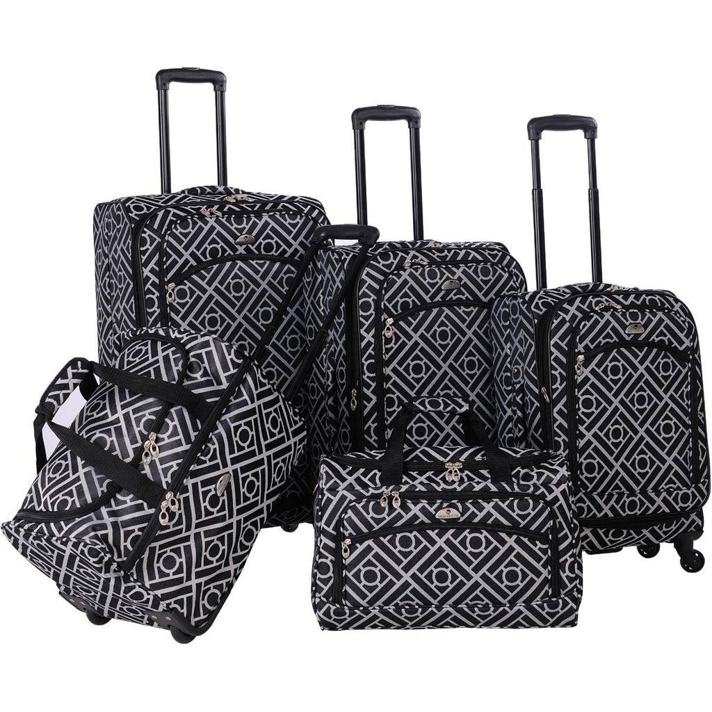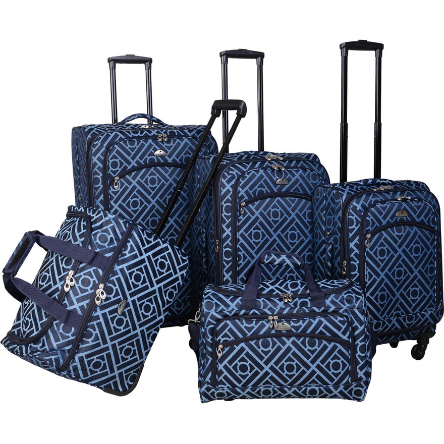 American Flyer 5-piece luggage set includes three spinner wheeled upright luggage, wheeled duffel and a personal carry-on duffel.