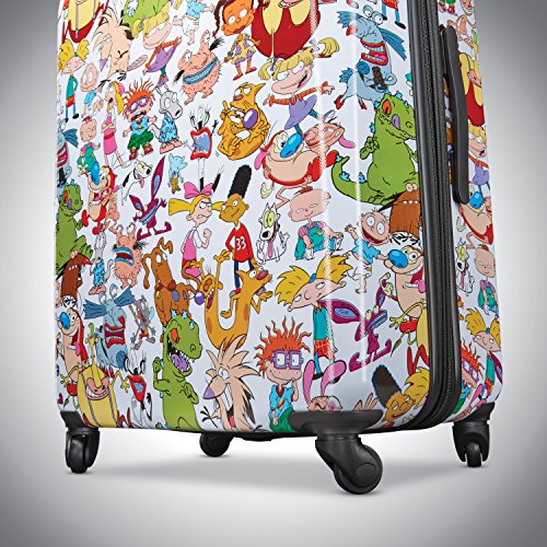 Details: Show your love for your favorite nickelodeon 90s mash up with this hardside spinner travel case from American Tourister. The American Tourister nickelodeon 21" spinner is made from lightweight and durable scratch resistent material and features a sleek design with single spinner wheels, an easy pull handle, and a top grab handle for easy lifting. The interior is fully lined and detailed with crisscross tie-down straps to hold clothing in place. Detailed with colorful graphics of your favorite nickelodeon mash ups, this case is perfect for boys and girls on the go. Pack more fun with this nickelodeon luggage!