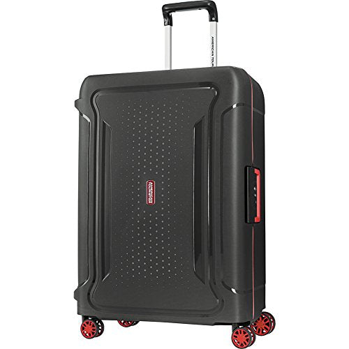 Details: With three pieces in the set, this luggage offers style and function for every quick trip or extended journey. The American Tourister Tribus 3 Piece Hardside Spinner Luggage Set is constructed from durable polypropylene and includes three spinner cases that measure 22, 27, and 31 tall. Each case is built with a telescoping pull handle, smooth-rolling spinner wheels, and a three point locking system with a TSA lock for added security. The interior of each case is fully lined and detailed with tie-down straps to prevent items from shifting during transit, a zippered divider panel that creates two separate packing areas, and zipper pockets to hold small items and personal accessories.