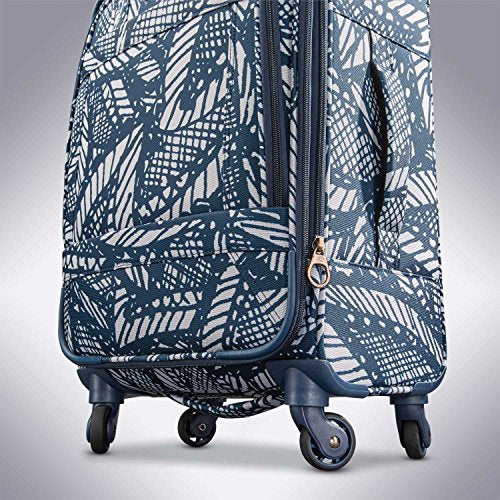 Details: Gorgeous rose gold components including a new American Tourister stacked logo plate, zipper pulls & beveled push button locking handle. All cases expand 1.5" & carry on spinner has a new bail style top carry handle. Single airflow spinner wheels for a smooth ride.