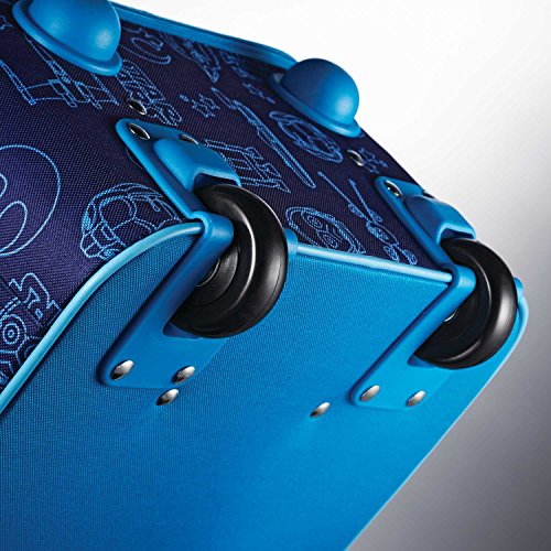 Details: Show your love for your favorite animated character with this softside upright travel case from American Tourister. The American Tourister 18" Upright is made from lightweight and durable polyester material and features a sleek design with in-line mounted skate wheels, an easy pull handle, and a top grab handle for easy lifting. The interior is fully lined and detailed with crisscross tie-down straps to hold clothing in place. Detailed with colorful graphics of your favorite Star Wars characters, Nickeodeon, Disney princesses, and other Disney stars, this case is perfect for boys and girls on the go. Pack more fun with this luggage.