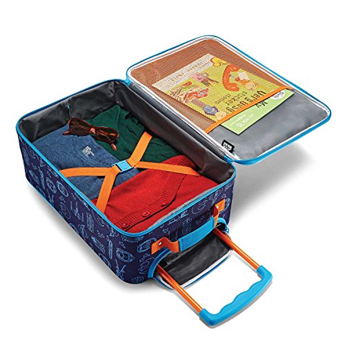 Details: Show your love for your favorite animated character with this softside upright travel case from American Tourister. The American Tourister 18" Upright is made from lightweight and durable polyester material and features a sleek design with in-line mounted skate wheels, an easy pull handle, and a top grab handle for easy lifting. The interior is fully lined and detailed with crisscross tie-down straps to hold clothing in place. Detailed with colorful graphics of your favorite Star Wars characters, Nickeodeon, Disney princesses, and other Disney stars, this case is perfect for boys and girls on the go. Pack more fun with this luggage.
