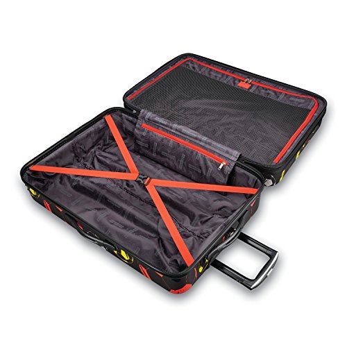 Details: Transport your travel essentials effortlessly and stylishly. This extremely lightweight and durable spinner features ABS scratch resistant texture with fashionable squared lines. It features single spinner wheels for a smooth ride and book opening case with mesh divider. The fully-lined interior has cross-straps and book opening case with mesh divider. TSA compliant combination lock for security and peace of mind.