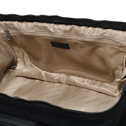Details: Andiamo represents the finest quality in travel. Constructed in 100 percent premium duramax nylon with leather trim and lavish interiors to keep travel items secure in the generous packing space. The satchel features a drop bOTtom along with side pocket with full organizer. Dual handle straps with magnetized closure and full length padded shoulder strap