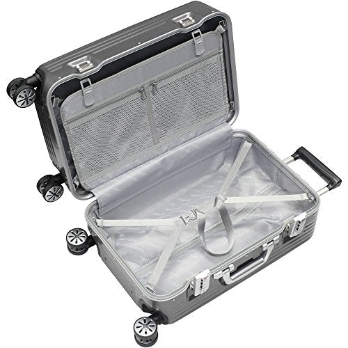 - ✈️ ALUMINUM FRAME STRUCTURE; The luggage shell made of aircraft-grade aluminum, lighter weight, higher strength, better compressive strength. aluminum-magnesium alloy bumper corners for enhanced overall durability to protect your belongings; Combined with luxury aluminum and PC material, this luggage features brushed finishing and grinding process, providing long-lasting usage and shining appearance, It also eliminates the trouble of the protective film can’t be peeled off thoroughly