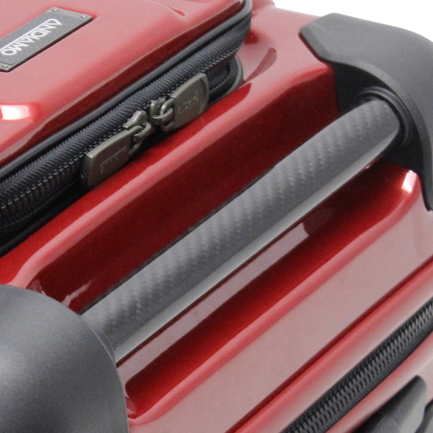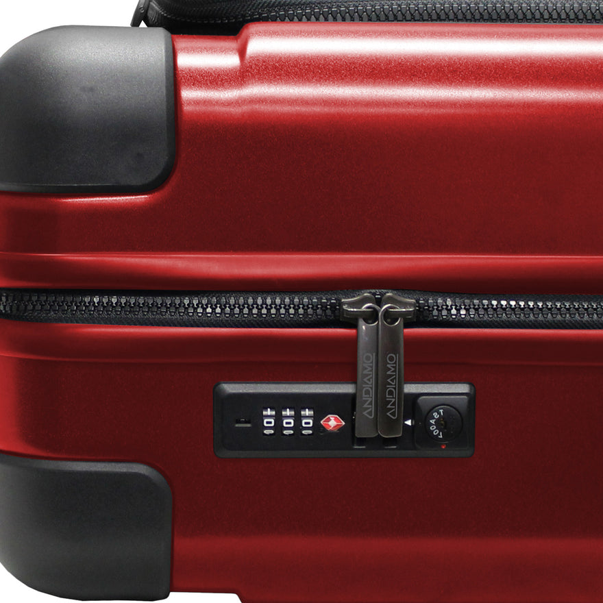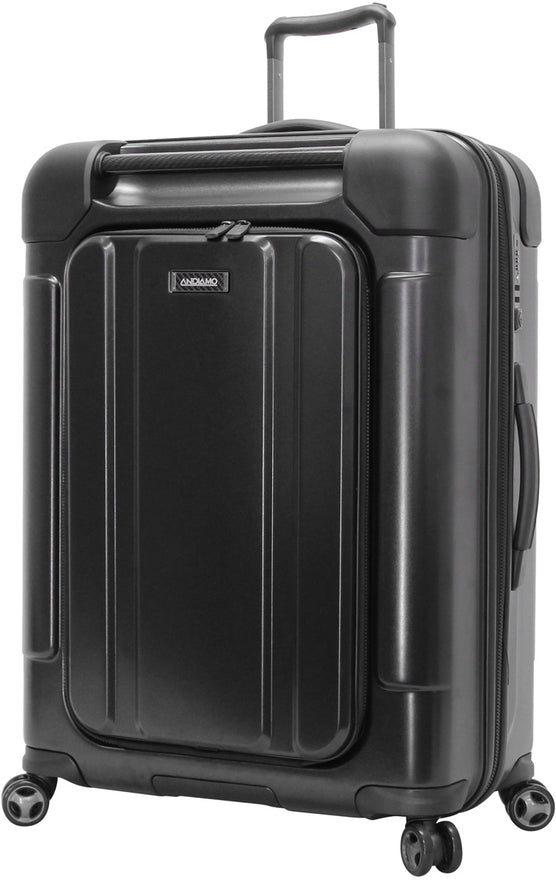Andiamo Pantera 28" spinner with 8 wheels made of industry leading Makrolon material, durable carbon fiber easy-lift bar, recessed handle system that gives a balanced lift. Has duel lock/unlock buttons for left or right handle travelers.