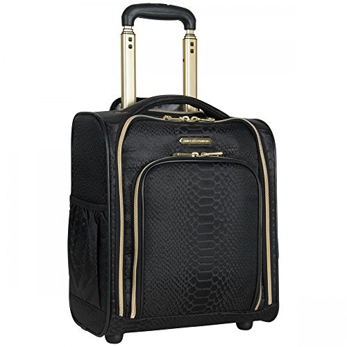 Details: Aimee Kestenberg Parker 16" Underseater is the perfect bag for the business-traveler who values style. Featuring Aimee Kestenberg's iconic gold plated Hardware and a chic custom printed design. This underseater is equipped with 2 durable wheels, self-repairing zippers, and an add-a-bag trolley tunnel that fits over luggage handles.