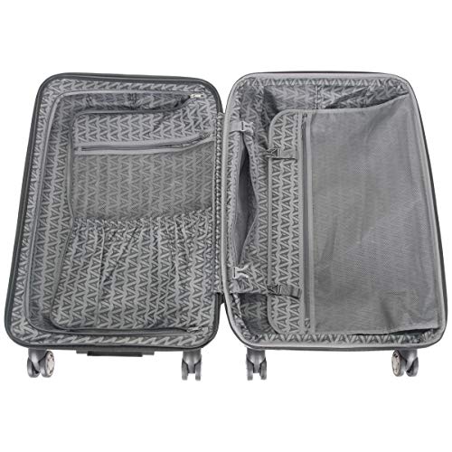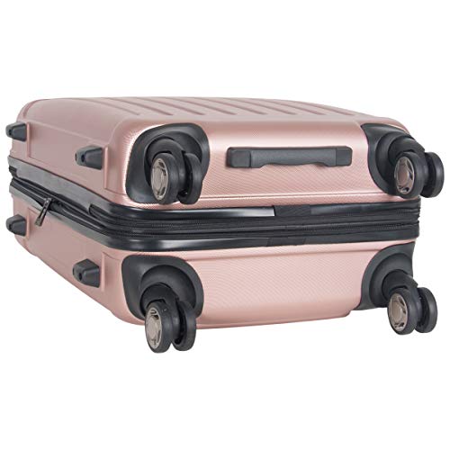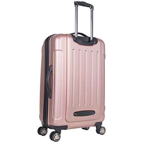 Details: Expands an additional 2.0 inches for greater carrying capacity Multi-directional 8-wheel spinners allow smooth, 360 degree movement over any rough surface for complete mobility free-weight rolling, relieving any pressure from your arms while on the move Lightweight construction helps you adhere to airline weight restrictions to avoid unneeded airport fees Durable ABS hard-shell exterior body material with fully lined interior Molded corner guard reinforcements for absorbing and deflecting shock for maximum impact resistance Self-repairing coil zippers for long-lasting use main compartment features expansion zipper and garment Restraints with zipper pockets for small items Under the lid unzips for greater carrying capacity and includes accessory pockets and open-top shoe pockets Fully lined interior Main compartment features a zipper accessory pocket and garment restraint straps to hold your clothes and contents in place Front lid features a large u-shaped zipper pocket allowing for double sided packing Convenient flexible top and side grab handles and molded bottom grab handle allows for easier lifting and maneuvering Molded side feet allow luggage to stand upright on its side Sturdy locking retractable push-button telescopic trolley handle extends to be 41 inches tall, conductive for simple one-handed use overall Dimensions: 27.5" H x 20" W x 11.0" - 13.0" D Weight: 9.6 lbs.