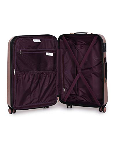 Details: Complete your favorite jet setting outfit with the stunning sparkle collection from it Girl! Featuring an eye-catching glitter finish with rose gold details, this collection is as on trend as you are! Designed with organization in mind, Each case has two packing compartments separated by a zip around divider, multiple pockets for shoes and accessories, and compression clothing straps to keep your favorite belongings neatly secured during travel. Fit a few extra pair of shoes or holiday souvenirs in each case with the handy expander from the middle, which provides up to 25% extra space while still ensuring stability. Your favorite fashion finds are safe in this ultra-durable case; complete with a fixed TSA lock for added security. Ditch boring travel - Travel the it Girl way!