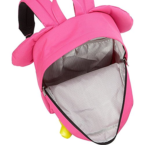 Details: Loungefly school backpack featuring Sanrio's My Melody character. Cute extras include 3d ears and bow with embroidered details. Bag has a roomy front pocket, interior laptop pocket and a patterned lining. Exterior has a top handle, reinforced adjustable straps and a zippered closure. Measurements: W: 11.5" X H: 17.5" X D: 5"