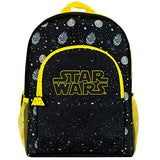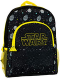 Details: Kids Star Wars Backpack. Your little Jedi will be all set to attend the Training Academy with their out of this world Star Wars bag! In bold black and yellow, this intergalactically awesome Star Wars rucksack features the iconic Star Wars logo in puff print at the centre front surrounded by a Star Wars inspired motif of the galaxy, X-Wing, Death Star and Millenium Falcon. Complete with a Star Wars zip pull. The large main compartment and front pocket makes this an ideal school bag.
