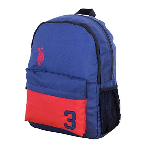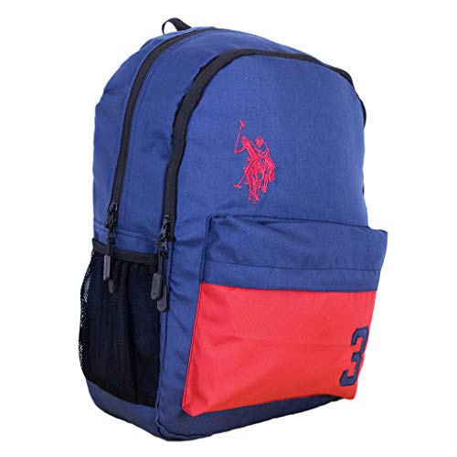 Details: Perfect for school, travel, and so much more, this Official U.S. Polo Assn. backpack is just what you need to get the job done! It is embellished with an embroidered horse logo on the front and a felt "3" patch and made with durable rip resistant nylon fabric that will stand up to the test of time. The backpack has a spacious main compartment with a padded laptop pouch that fits machines up to 16 inches and closes with a zipper. Other pockets include a front zipper compartment with an organization pocket a mesh zip pocket, and side mesh pockets for water. It also has padded adjustable shoulder straps provide comfort and reduce stress on your back.