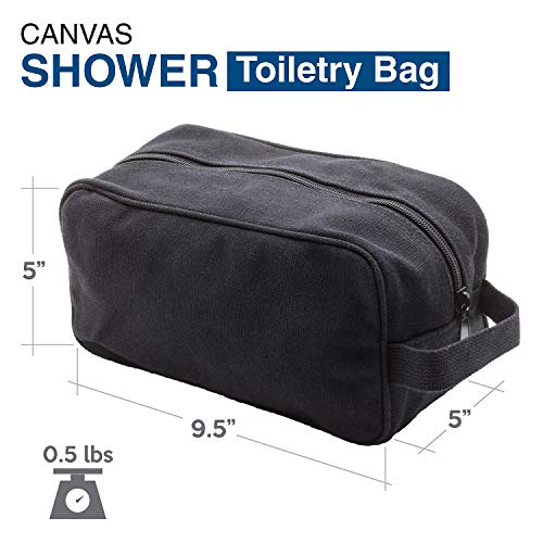 A versatile toiletry kit constructed of rugged unwashed canvas, with a convenient carry handle and easy access zipper closure.