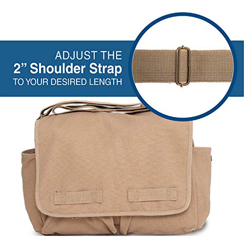 - INNOVATIVE DESIGN FEATURES: Comfortable, 2" inch wide, adjustable shoulder strap designed for comfort during long wear promising not to weigh you down! Top flap with Velcro closure keep your valuables safe and secure while you're on the go. Bag measures 15" x 11" x 6"