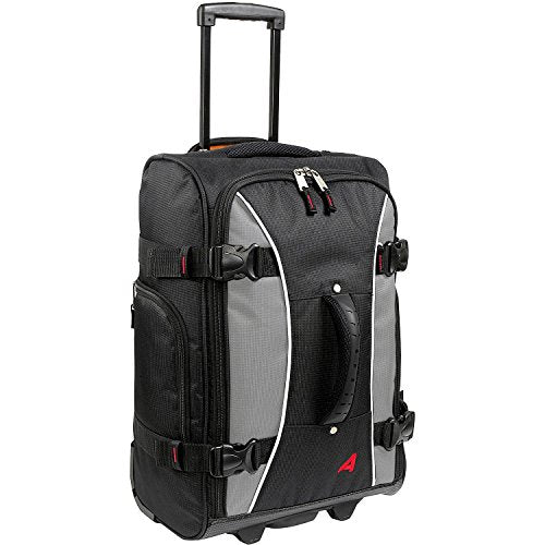 Details: A versatile bag makes packing and traveling a little bit easier. The Athlon 21 inch hybrid travelers rolling duffel is constructed from a durable denier/nylon blend and features a wide zippered opening that makes it easy to pack and unpack. This rolling duffel has a roomy main compartment with tie down garment straps, side mesh pouches, a zippered mesh pocket, and an elastic lid pocket for shoes or accessories.