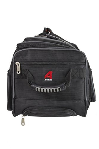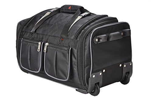 Details: Be ready for your next adventure with all your gear stored inside this rugged wheeled duffel bag from Athalon. The Athalon 15-Pocket 29" Wheeled Duffel bag is constructed from high density polyester with an extra strong 1200D water resistant Polyester bottom, a lightweight and durable honeycomb frame, a telescoping handle system with an ergonomic hand grip, and large ball bearing in-line skate wheels for easy mobility. This durable duffel has a large main compartment to hold your bulky gear. It also has a total of fifteen pockets including mesh lid pockets, interior zippered pockets, shoe pockets and four convenient exterior pockets to hold your frequently used items. Why buy additional “organizer bags” when The Athalon 15 Pocket Wheeled Duffel comes with all the organization you’ll ever need built right in.