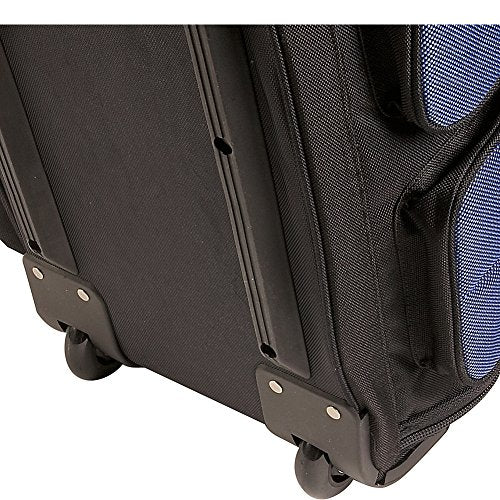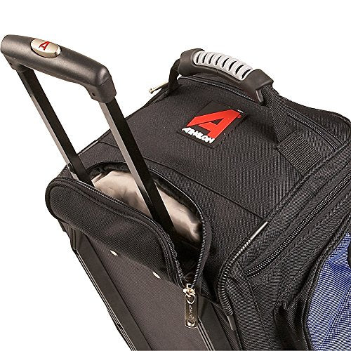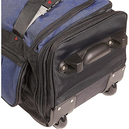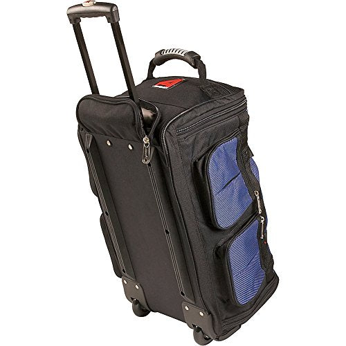 Details: Embark on your next adventure with all your gear stored inside this rugged rolling duffel bag from Athalon. The Athalon 15-pocket 22" wheeling carry on duffel bag is constructed from high density polyester with a ballistic nylon bottom, a lightweight and durable honeycomb frame, a telescoping handle system with an ergonomic hand grip, and large Ball bearing in-line skate wheels for easy mobility. This durable duffel has a large main compartment to hold your bulky gear and has a total of Fifteen pockets including mesh lid pockets, interior zippered pockets, shoe pockets, a see through mesh toiletry pouch, and four convenient exterior pockets to hold your frequently used items. Specially designed interior pop-up frame allows bag to stand in a fully structured "ready to pack" position or collapse for easy storage.