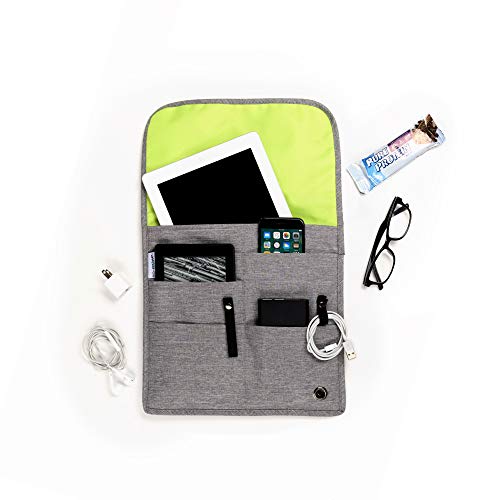 Details: Relax and travel stress free with the So-Mine Commuter Essential Travel Organizer. Keep all your important travel essentials within easy reach in one convenient location. Simply pack all your travel devices, such as iPad, kindle, mobile phone, headphones, and chargers along with important travel documents, reading materials and snacks before you leave for the airport. Hang the So-Mine Travel Organizer on your carry on rolling luggage handle for quick access. Don't hold up other passengers getting travel necessities out of your carry on bag. Once you have reached your seat, attach the Commuter Essential Travel Organizer to the seat back pocket. No more searching for items you need during your trip. Helps prevent you from having to put your hands in dirty seatback pockets. Also a road trip essential, place in your car backseat pocket or hang on the seat headrest with the flexible handle. Keep the kids games, toys and snacks organized during long road trips. The So-Mine Commuter Essential Travel Organizer is the perfect car or airplane travel accessory.