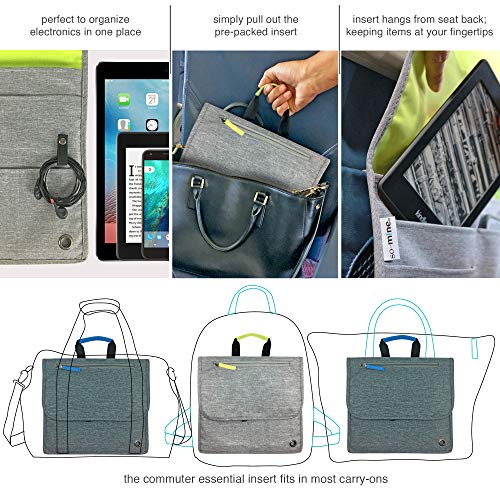 - TRAVEL NECESSITY So-Mine’s Commuter Essential Bag is the perfect organizing solution. The variety of pockets keep frequently needed items close at hand making this bag an ideal companion for frequent flyers, parents, long road trips, and more. Organizer is engineered to hang from airplane, train, and car backseat pockets, and to fit easily inside most carry-on luggage. Keep important accessories and electronics out of filthy communal pockets for good!