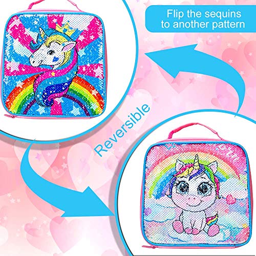 - CUTE SEQUIN BACKPACK DESIGN: This kids backpack is inspired by cute and eye catching unicorn design. The front pocket is designed by reversible sequin material, which will attract your kids enjoy self playing.
