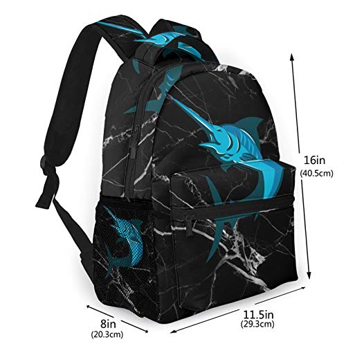 Black Backpack blue marlin fish jumping Daypacks for Women Men, Bookbags for Outdoor Hiking School