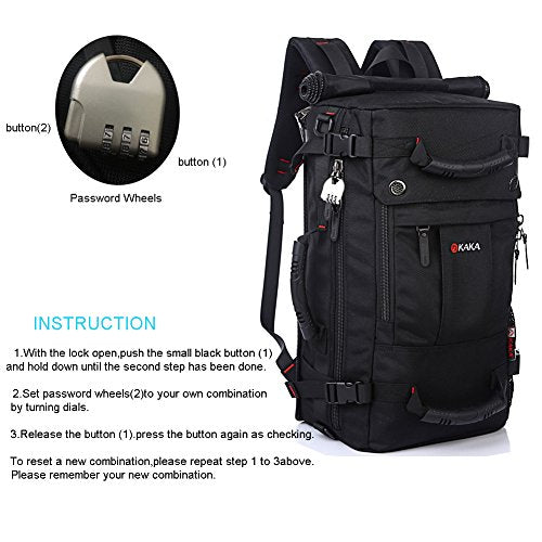 - ★ FEATURE:With Free Anti-theft lock of each bag.Huge Capacity,multi-compartment design,Water Repellent,durable and strong.This bag can be also used as 3 ways,(backpack,protable hand bag and two person carry luggage)
