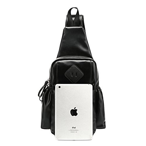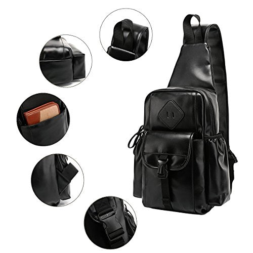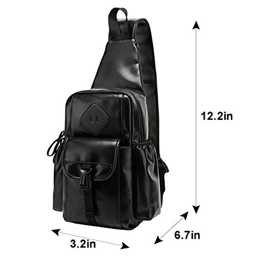 Details: ABage Men's Sling Backpack Vintage Leather Chest Shoulder Bag Crossbody Pack Daypack, Black