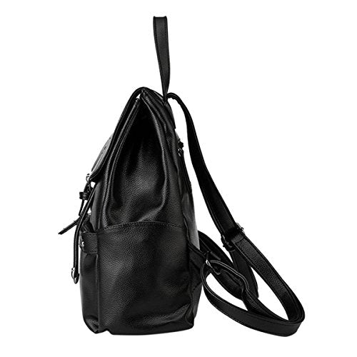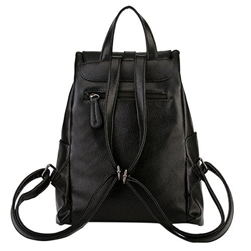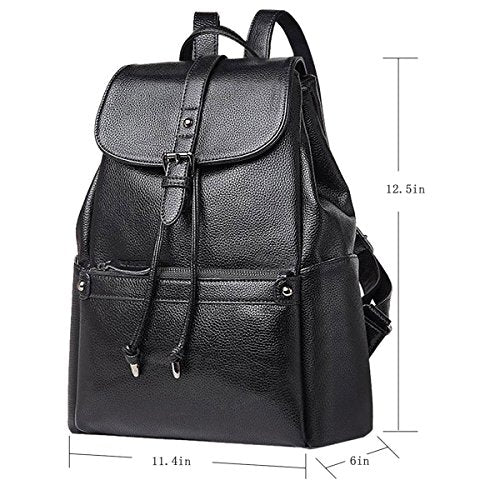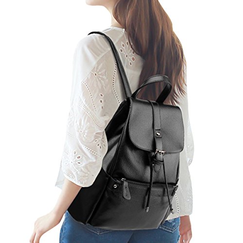 Details: ABage Women's Leather Backpack Purse Lightweight Flap Drawstring School Backpack, Black