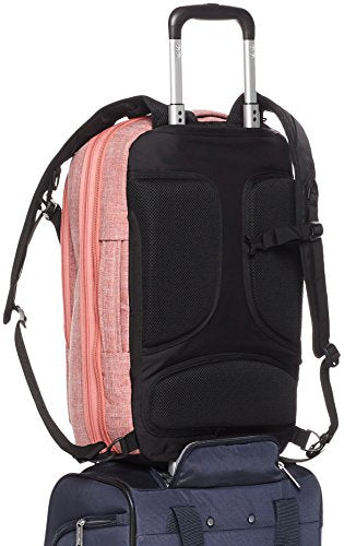 - Low-profile top and side grab handles; vertical and horizontal luggage-handle pass-thru panels for convenient transport