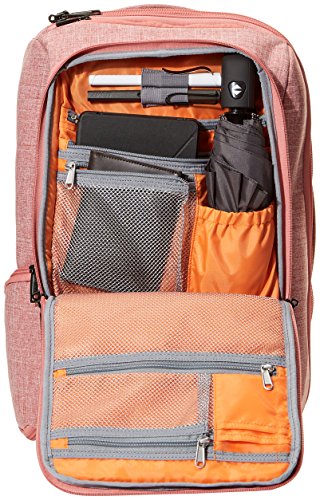 - Slim backpack with comfortable fully vented and well-padded back panel; ideal for overnight trips; stylish Salmon color
