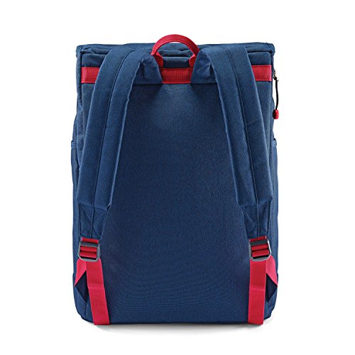 Details: • 600D Shiny Poly & 600D Two tone• Accent zippers are metal or plastic teeth• Front flap with quick stash pocket with custom die cut label lashing square• Side entry laptop compartment• Main compartment has an organization panel with tricot-lined tablet sleeve• Custom American Tourister hardware; zipper pulls, rivets, and patches• Water bottle pocket• Padded contrast colored shoulder straps• Weight: 1.16 lbs.Body Dimensions: 17.7" x 12.2" x 7.1"