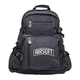 Versatile vintage canvas backpack. The bag has a main compartment that easily holds notebooks, supplies, books, and all your other daily necessities. The small size backpack can hold a 12-inch laptop, while the large size backpack can hold a 15-inch laptop. This bag features washed cotton canvas material, padded shoulder straps, 3 front zippered pouches, one main compartment, 2 side pockets with elastic and tie-down straps, and a top carry handle.