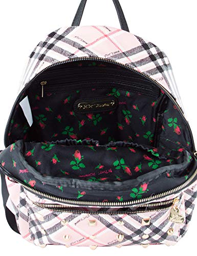 Betsey Johnson Plaid Patent Stud Medium Backpack - Blush Multi