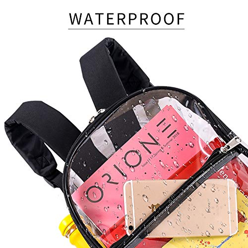 Clear Backpack Mini Stadium Approved, Cute Soft Shoulder Strap Waterproof lightweight Transparent See Through Backpack Small for Work, Travel, Concert, Beach & Sport Events(Black)