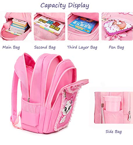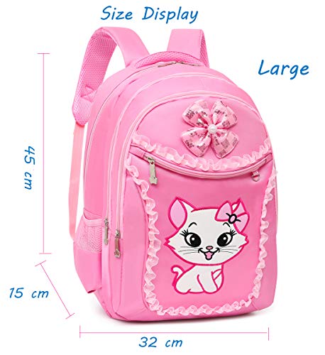 Debbieicy Cute Cat Printing Lace Backpack Lightweight Princess School Bag Kids Bookbag Pen Bag Set for Primary Girls (Large, Pink)