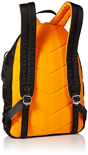 Details: Diesel Super pass bylon backpack with grommet and lacing details with pop orange strap detail. Adjustable shoulder straps.