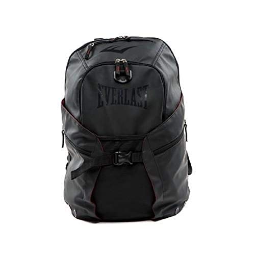 Details: This durable and spacious backpack was designed to carry all of your training and everyday necessities. Half zip main compartment expands to hold large equipment and includes a padded laptop sleeve and separate pocket for water bottle storage. Vinyl lined front compartment holds additional items and includes multiple external pockets made specifically to hold gloves or shoes. Circular ventilation panels run along the two side pockets to keep equipment dry and eliminate odors. An open mesh section holds sweaty post workout gear and two small side zip pockets offer storage to organize smaller belongings (I. e. phone, keys, earphones, etc. ). Backpack features also include an adjustable side release buckle to fit and secure items in external pockets. 4-point adjustable shoulder straps and a full padded mesh back panel for maximum carrying comfort. Two D rings for additional attachments and padded top haul handle. Synthetic leather with a matte finish.