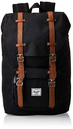 - DURABLE DESIGN: A timeless silhouette inspired by the classic mountaineering style. Sturdy polyester and nylon fabric, made for all adventures. Signature striped liner, drawcord closure and magnet-fastened straps with metal pin buckles. Finished with Herschel’s classic woven label. Spacious, versatile and tech-friendly, the Herschel Little America is suited for both your everyday commutes and your airplane carry-ons.