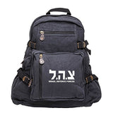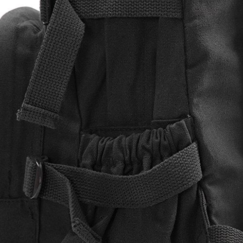 Versatile vintage canvas backpack. The bag has a main compartment that easily holds notebooks, supplies, books, and all your other daily necessities. The small size backpack can hold a 12-inch laptop, while the large size backpack can hold a 15-inch laptop. This bag features washed cotton canvas material, padded shoulder straps, 3 front zippered pouches, one main compartment, 2 side pockets with elastic and tie-down straps, and a top carry handle.
