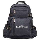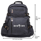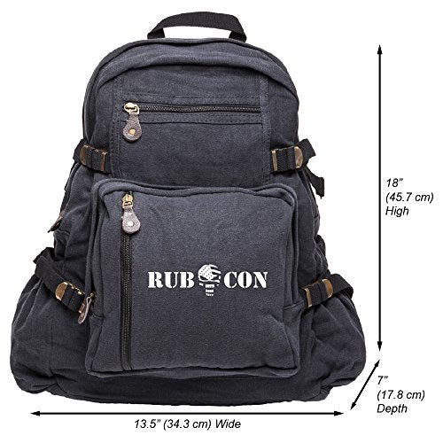 Versatile vintage canvas backpack. The bag has a main compartment that easily holds notebooks, supplies, books, and all your other daily necessities. The small size backpack can hold a 12-inch laptop, while the large size backpack can hold a 15-inch laptop. This bag features washed cotton canvas material, padded shoulder straps, 3 front zippered pouches, one main compartment, 2 side pockets with elastic and tie-down straps, and a top carry handle.