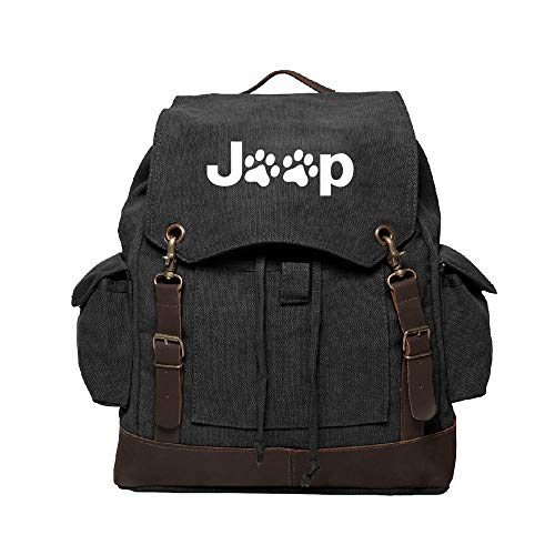 Jeep Wrangler Cat Dog Paw Prints Canvas Rucksack Backpack w/Leather Straps Black