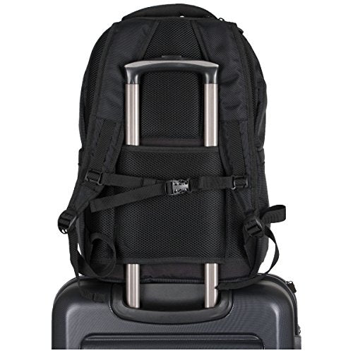 - Roomy main compartment includes a zippered mesh accessory pocket with plenty of room to hold other needed items. Rear compartment is padded to hold and protect laptop. Easy to grab top handle and dual side exterior zippered accessory / water bottle pockets featured. Padded air mesh back panel and shoulder straps with secure sternum strap and trolley tunnel made to fit over most luggage handles for hands free carrying. Overall size: 18.5" h x 12.5" w x 8.0" d. Computer compartment dimensions: 15.25" h x 10.5" w x 1.5" d