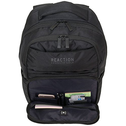 - 1680d polyester dual compartment 15.6" computer backpack. Rfid blocking technology offers protection in organizer pockets. Fits most laptops with up to 15.6" screens. Compatible with most tablets. Durable, 1680d polyester exterior with fully lined interior. Front exterior includes a vertical zipper pocket, a hidden zippered padded tablet pocket, and an upper hidden zipper pocket lined with soft brushed polyester to hold and protect valuables, such as sunglasses.