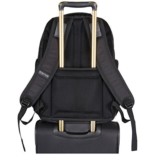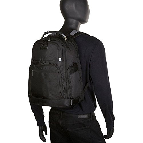 - Rear exterior features a padded air-mesh back panel, adjustable shoulder straps with shock absorbent straps for ultimate comfort and trolley tunnel that fits over most luggage upright handles for hands-free carrying. Overall size: 18.0" h x 14.0" w x 8.0"- 9.5" d. Computer compartment size: 15.75" h x 11.0" w x 1.5" d